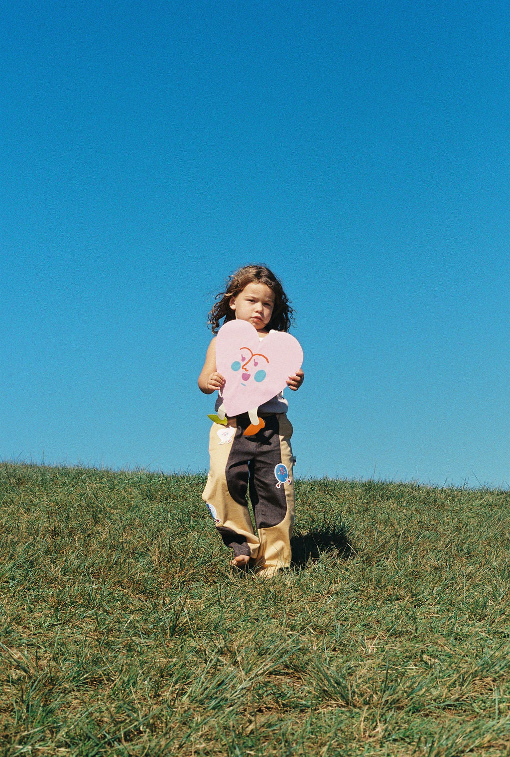 The Two‑Toned Straight Leg Pants blend playful design with durable comfort. Made from 100% cotton twill, they feature a striking dual‑tone color block of camel and deep charcoal, shaped with clean straight legs for a relaxed yet structured silhouette. The pants are decorated with colorful embroidered character patches, adding a fun and whimsical edge. An elastic waistband ensures an easy, flexible fit, while back patch pockets enhance function and everyday wearability.